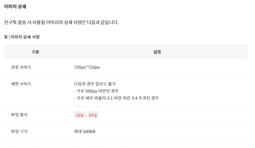카카오채널 친구톡 이미지 첨부시 주의사항 본문